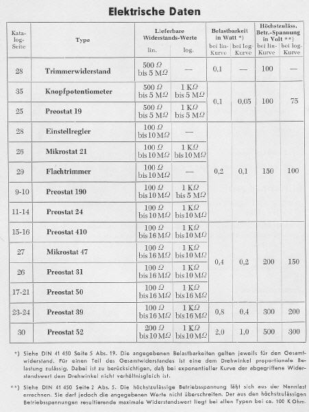 Angebot der Firma Preh- Lieferbare Werte und allgmeine Daten.