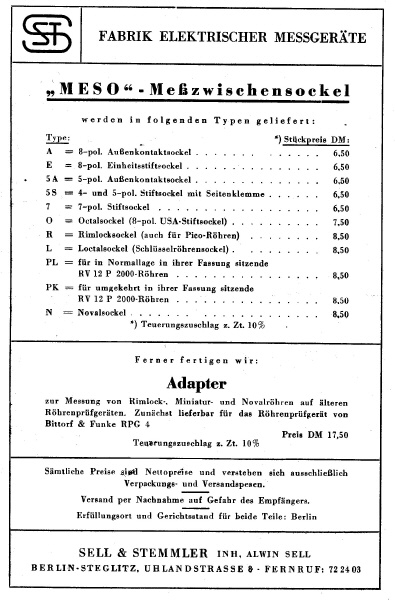 SELL & STEMMLER MEßZWISCHENSOCKEL "MESO"