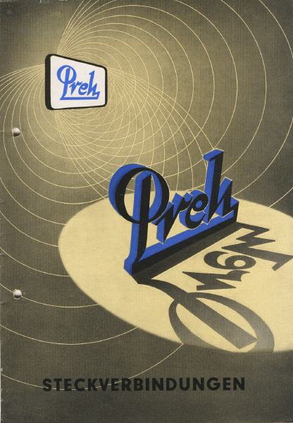 Preh 1090/III/1957, aus dem Inhalt: Zwergstecker, Zwerg-Kupplung, Flansch-Steckdosen, Batterie-Stecker, Batterie-Zwischenstecker, Miniatur-Stecker, Noval-Stecker, Oktal- und Kupplungsstecker.